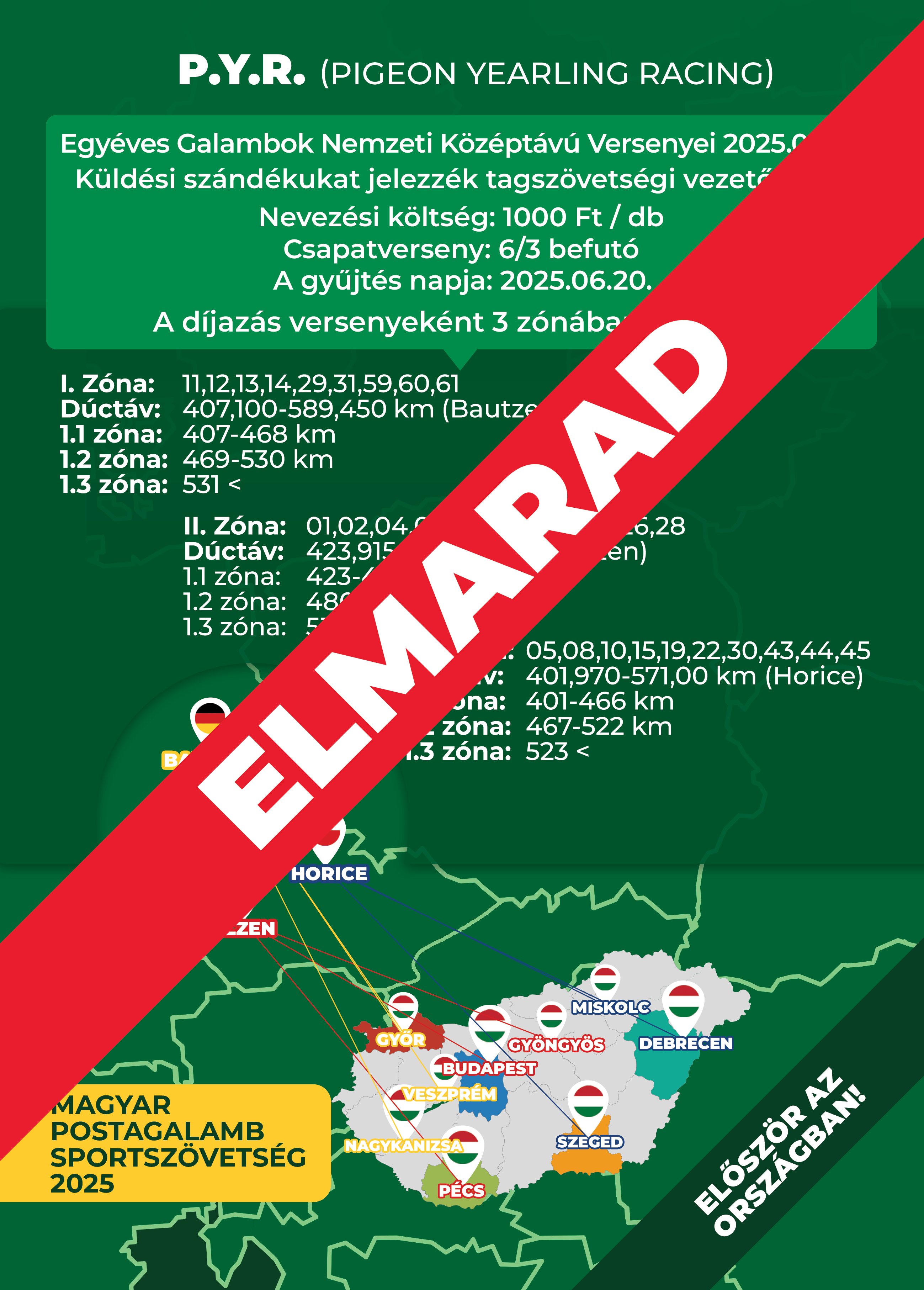 Egyéves Galambok Nemzeti Középtávú Versenyei – ELMARAD Közzétéve 2025. június 18. , irodajúnius 18, 2025